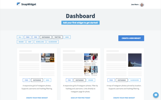 For those with a SnapWidget account, free or paid, you now have access to your own dashboard where all your configured widgets are grouped together for easy access and updating.